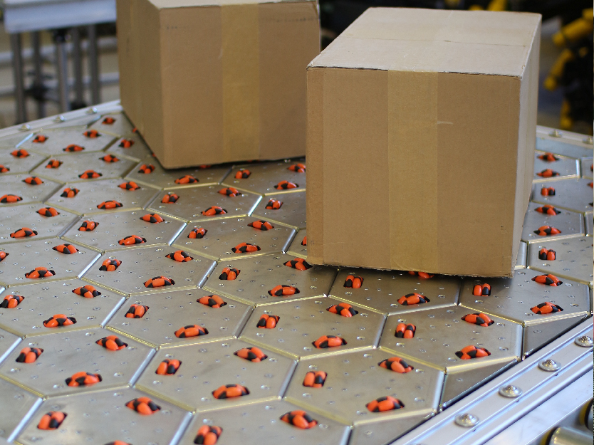 Celluveyor is an omnidirectional conveyor belt that consists of small hexagonal cells capable of moving products in any direction. Operators set a product's course by using special software installed on a tablet. The conveyor belt is most suited for smart warehouses and assembly lines.